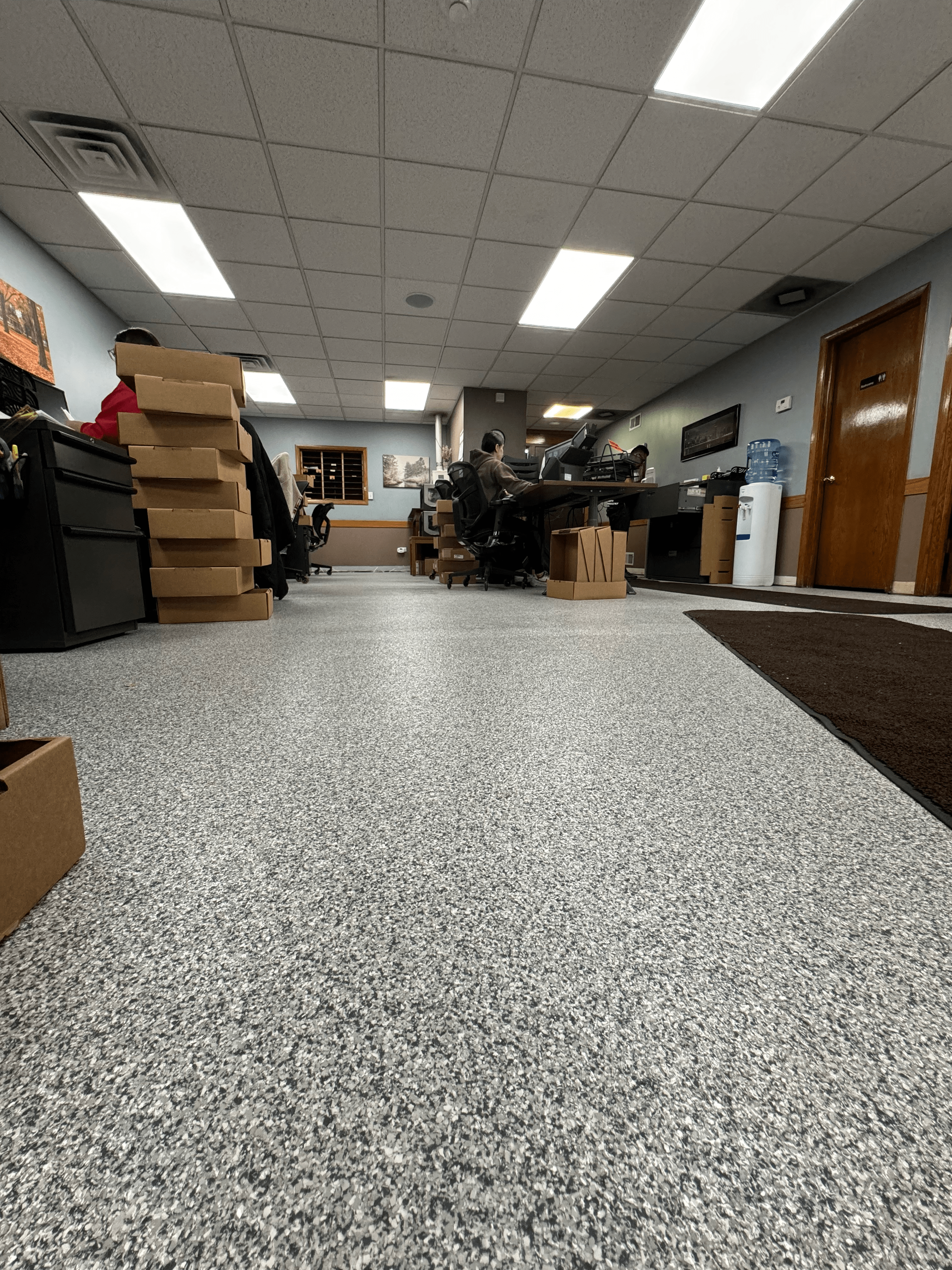 Our meticulous process begins with expert concrete grinding, ensuring a flawless foundation for the coating application. We go beyond the basics, addressing cracks and holes to guarantee a long-lasting result. The application of epoxy serves as a robust base, setting the stage for the introduction of customizable flake coatings that bring your vision to life.
