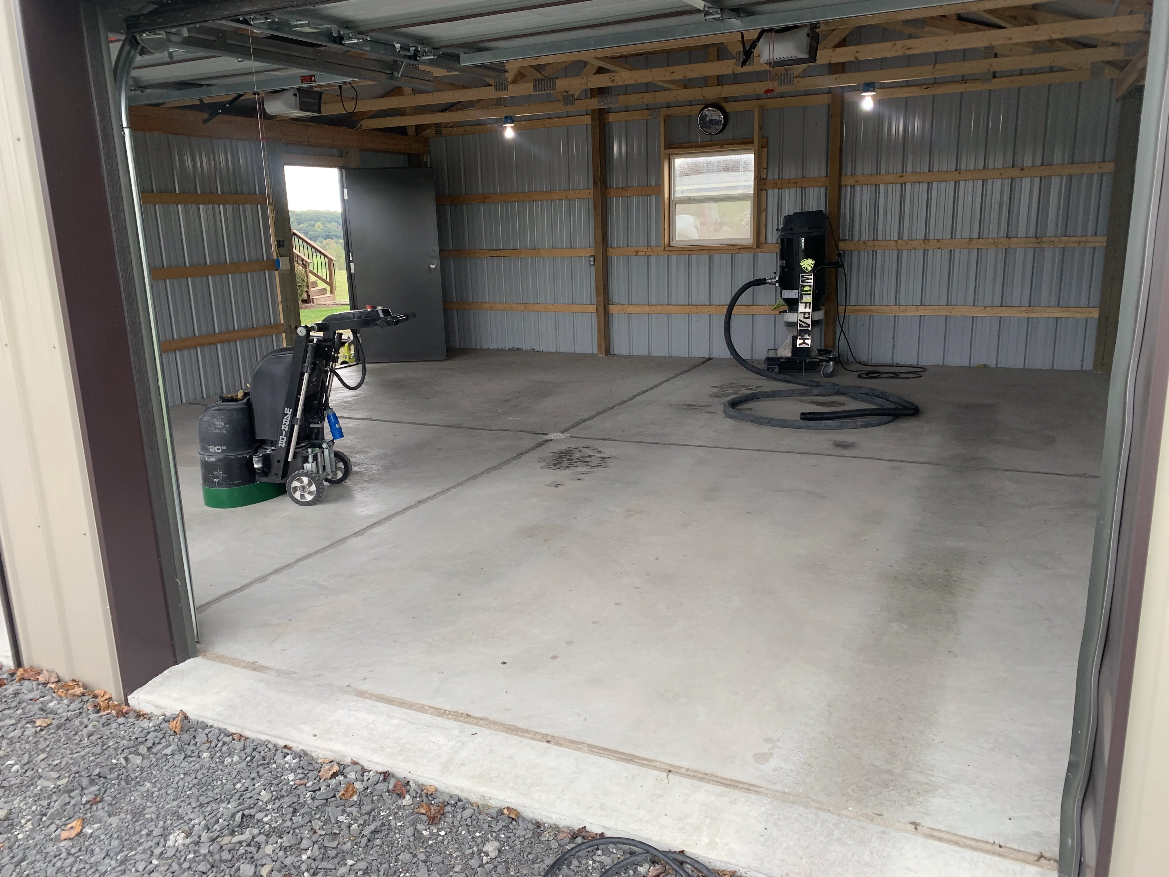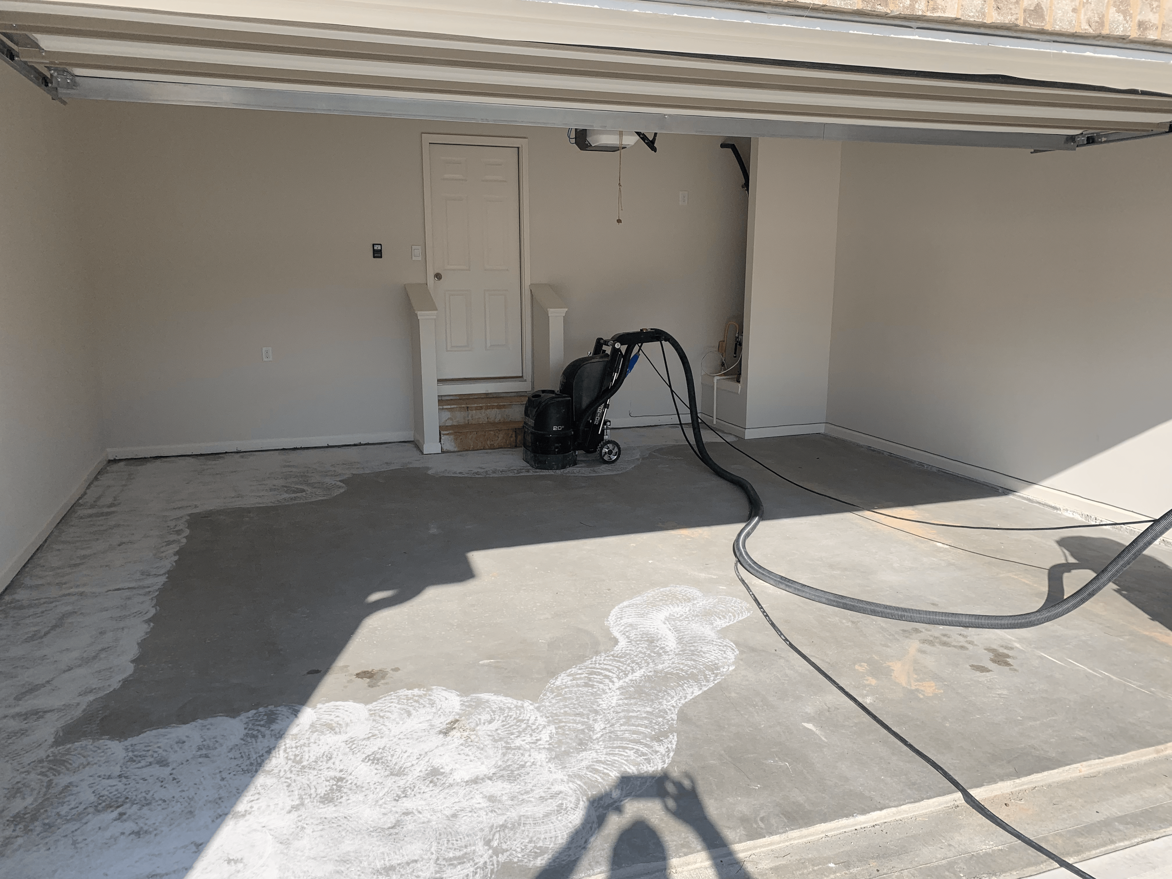 Begin the garage coating process by meticulously grinding the concrete surface. This step not only prepares the concrete for further treatment but also ensures a smooth and even foundation for the coating application.