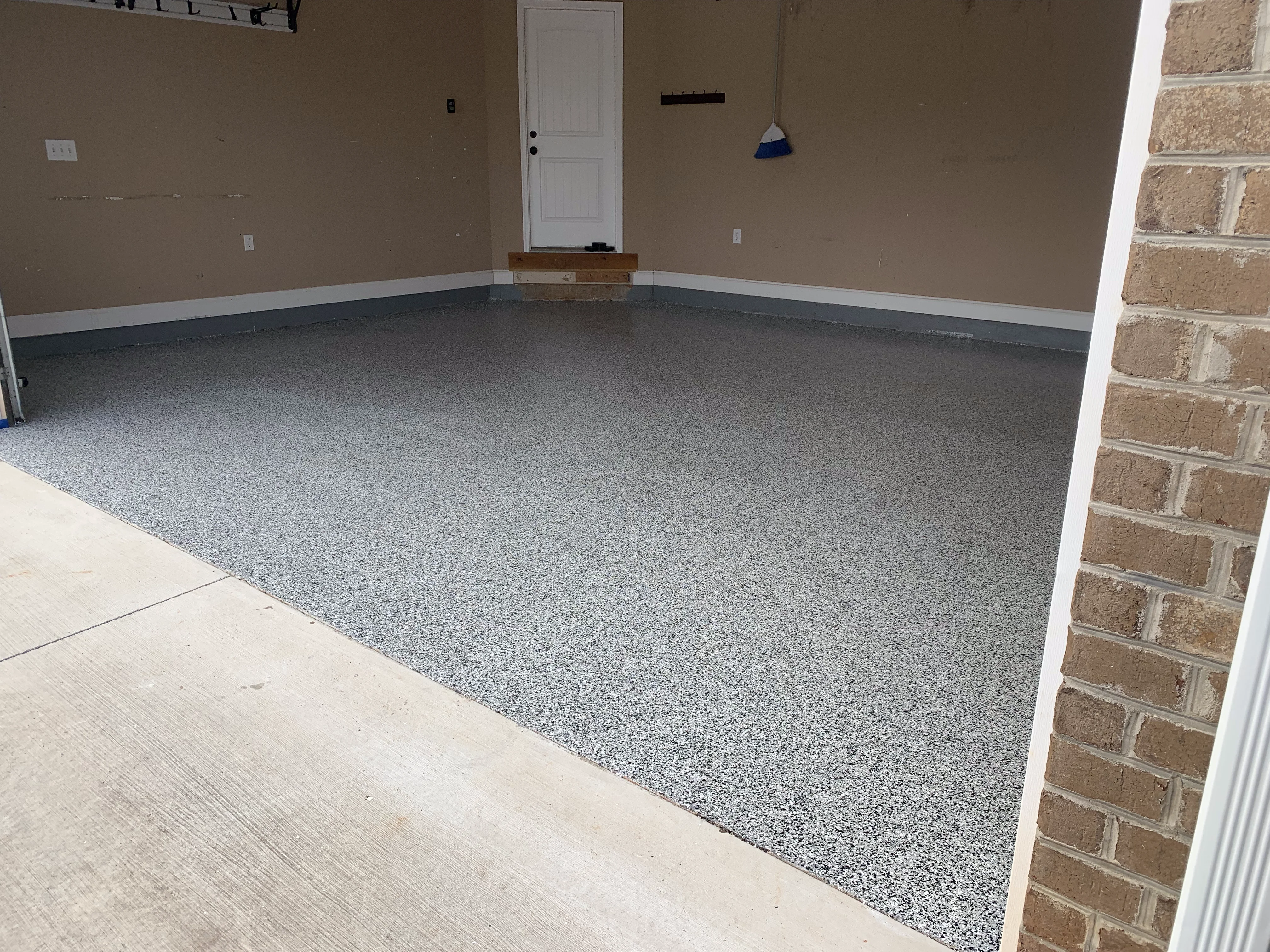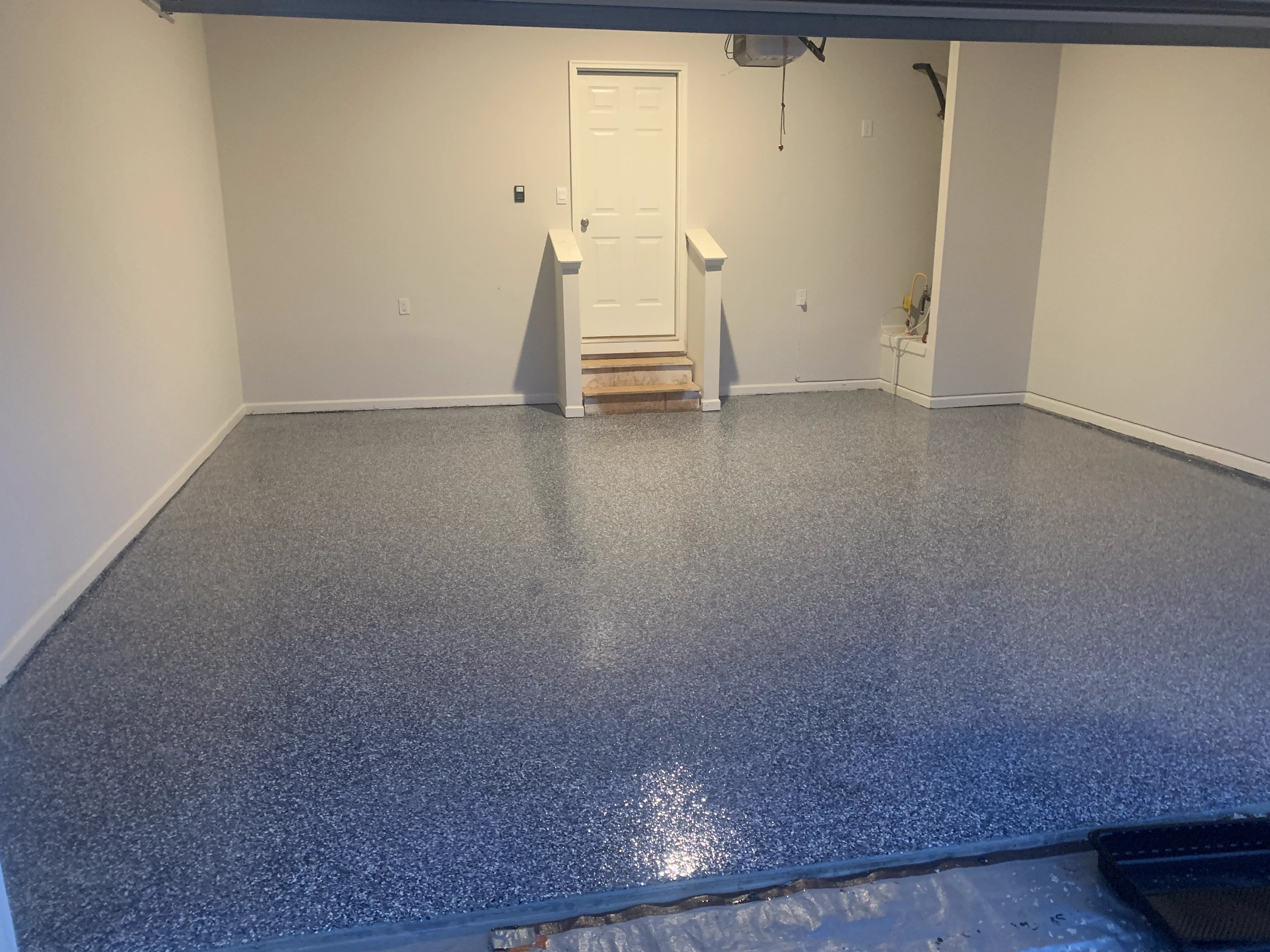Introduce visual interest and texture by carefully applying flake coatings. This customizable step allows you to achieve a unique and personalized design, turning your garage into a stylish and functional space.